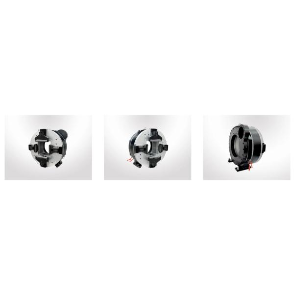 The chuck can work in full stroke without additional adjustment of four jaws. It can clamp all applicable pipe fittings and improve production efficiency. Adopting a fully closed structure, the chuck has better stability and wear resistance. With cross roller bearing, it has longer service life, higher rotary accuracy and repeated positioning accuracy than traditional laser chuck, and greater clamping force than similar products in the market. In the case of low air pressure, a smaller clamping force can be obtained, thereby satisfying the need of processing thin-walled pipe fittings.